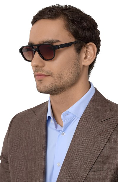 Солнцезащитные очки The Richie с антибликовыми линзами CR-39 выполнили из ацетата. Армированные дужки аксессуара соединили с рамкой при помощи 7-цилиндровых петель.