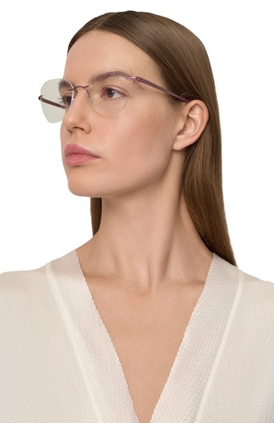 Безободковую оправу с тонкими дужками и мостом изготовили из титана и полимера SPX®+. Лаконичный аксессуар включили в коллекцию Purist.