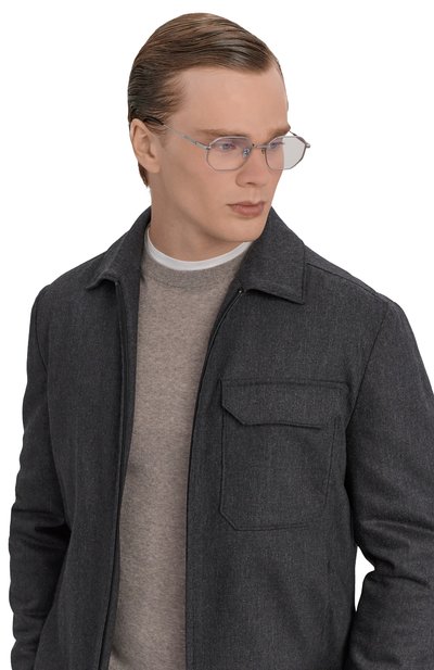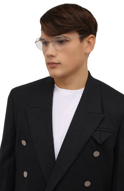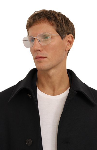 Безободковые очки HM12 с регулируемыми носоупорами и узкими дужками изготовили из титана. Аксессуар дополнили голубыми поликарбонатными линзами с максимальным уровнем защиты от УФ-лучей.