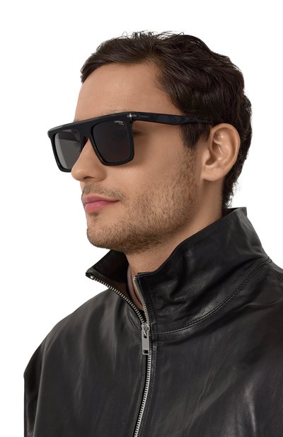 Квадратные солнцезащитные очки Victory C 09 с затемненными линзами изготовили под давлением из ацетата. Аксессуар декорировали брендированными вставками на мосту и дужках.