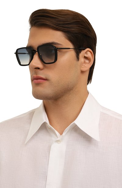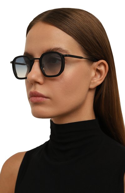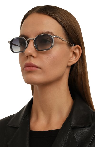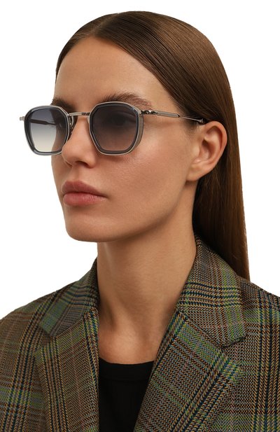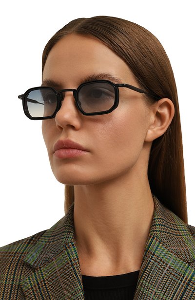 Геометричные очки Dennis с оправой из нержавеющей стали и ацетата дополнили золотистыми титановыми шорами и носоупорами. Градиентные линзы CR39 аксессуара с антибликовым покрытием обеспечивают 100-процентную защиту от ультрафиолета.