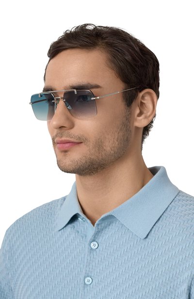 Оправу круглых очков Gina с подвижными носоупорами выполнили из нержавеющей стали с серебряным покрытием и полупрозрачного ацетата. Аксессуар с градиентными антибликовыми линзами CR39, полностью блокирующими ультрафиолет, украсили на заушниках брендированными пластинами.