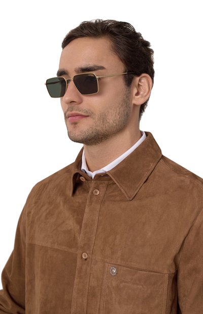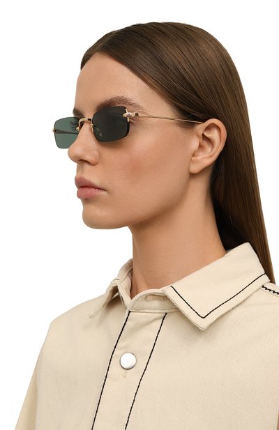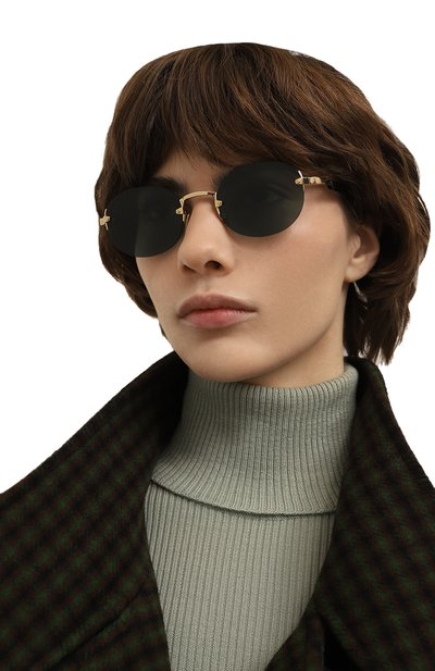 Безободковые солнцезащитные очки Moonstone с антибликовыми нейлоновыми линзами не пропускают 100% UVA/UVB лучей. Мост, носоупоры и крепления ацетатных дужек изготовлены из нержавеющей стали с золотистым финишем.