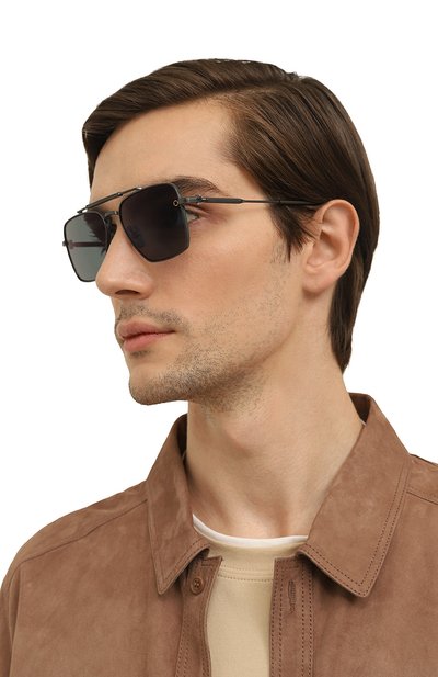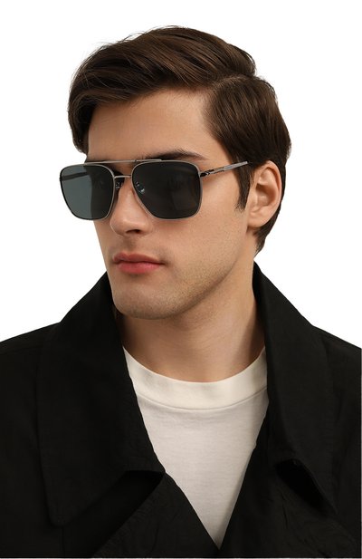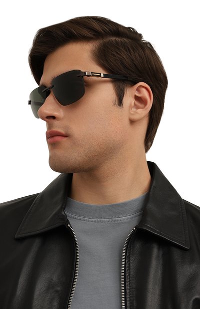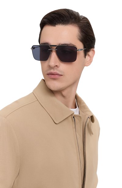 Тонкую безободковую оправу очков Classic Racing с однотонными линзами, полностью блокирующими ультрафиолет, выполнили из титана с серебристым покрытием. Дужки с брендированными пластинами на ацетатных заушниках дополнили вставками из темного дерева, декорированными логотипом.