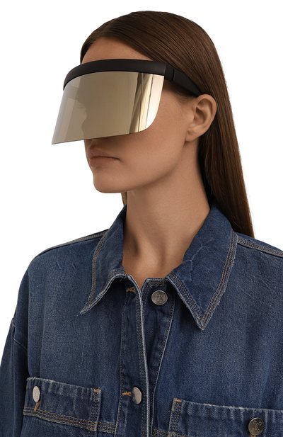 Козырек DiorClub V1U выполнили из полимера с мотивом Dior Oblique. Защищающий от света аксессуар дополнили планкой с надписью Christian Dior Paris и регулируемым брендированным ремешком.