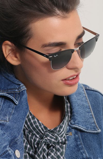 Безободковые металлические очки с ацетатными заушниками украсили накладкой в виде брендированного сердца. Затемненные линзы модели на 100% блокируют UVA- и UVB-лучи.