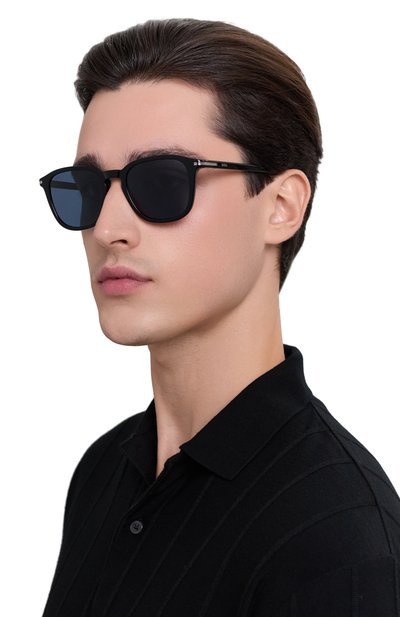 Авиаторы украсили выгравированным логотипом на металлическом двойном мосту и фигурных узких дужках. Аксессуар из глянцевого ацетата оснастили поляризованными зеркальными линзами с антибликовым покрытием.