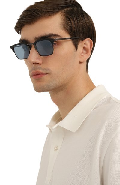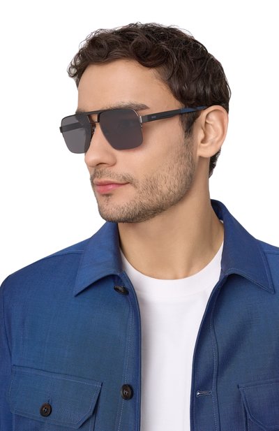 Безободковые солнцезащитные очки Escondido изготовили из тонкого титана. Безвинтовой аксессуар с подвижными носоупорами оснастили фигурными антибликовыми линзами, не пропускающими ультрафиолет.