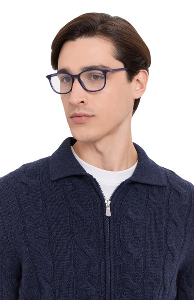 Прямоугольную черепаховую оправу Alain весом 26 граммов выполнили из легкого пропионата целлюлозы. Армированные дужки модели с неподвижными носоупорами декорировали серебристыми логотипами.