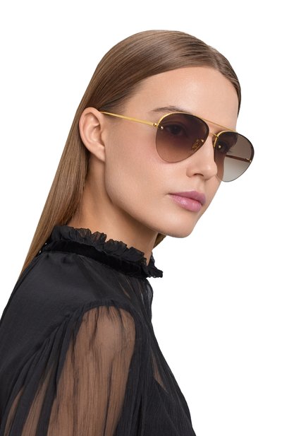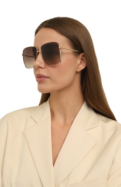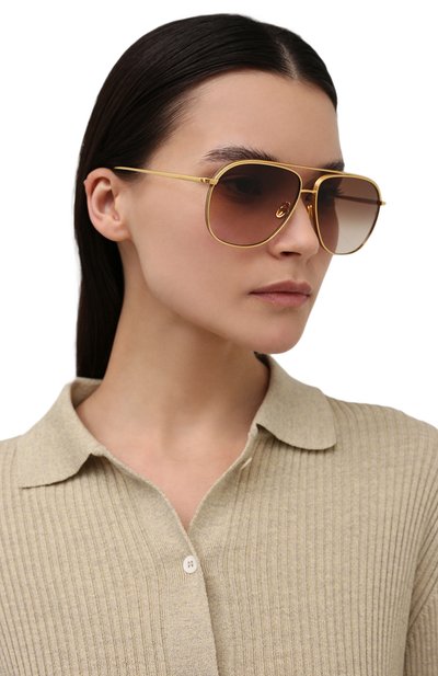Авиаторы DiorCannage A1U с градиентными линзами, блокирующими ультрафиолет, выполнили из тонкого металла. Дужки с выгравированным фирменным узором Cannage украсили монограммой CD.