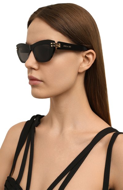Овальные солнцезащитные очки с литыми носоупорами выполнили из ацетата. Рамку украсили заклепками в виде фирменных звезд, а дужки модели дополнили логотипом бренда.