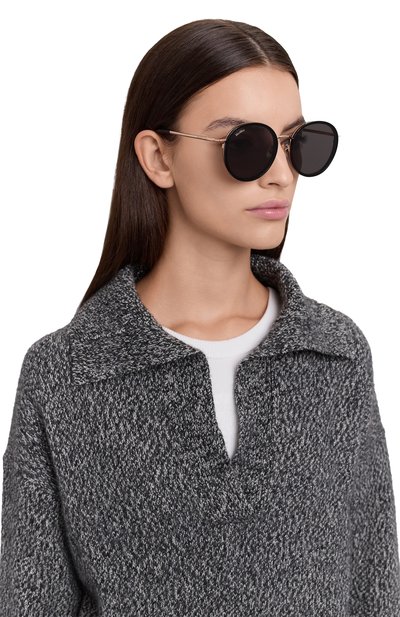 Авиаторы с одним мостом и подвижными носоупорами выполнили из тонкого металла. Аксессуар с ацетатными заушниками оснастили дымчатыми линзами, не пропускающими ультрафиолет.