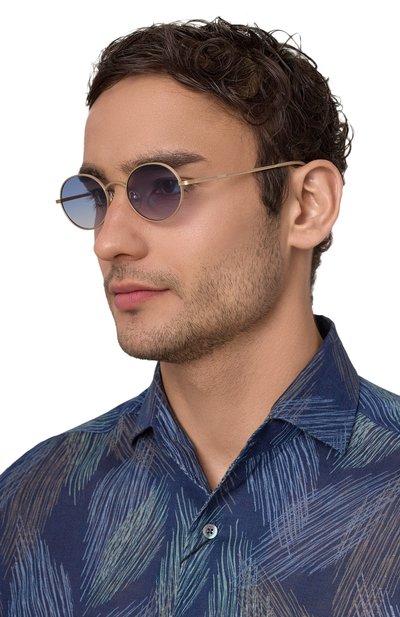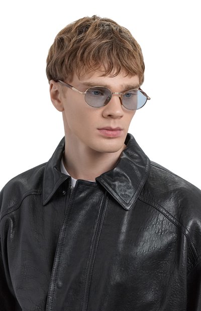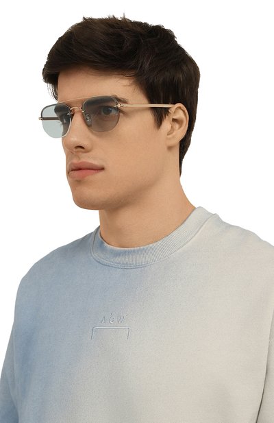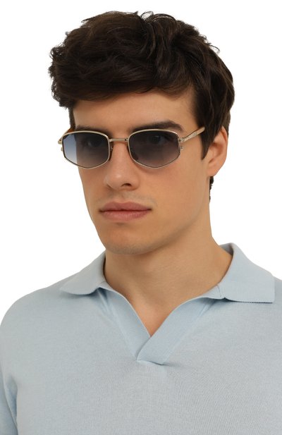 Прямоугольные солнцезащитные очки с полупрозрачными заушниками Origami выполнили из металла. Мост и дужки модели украсили рифленым узором.