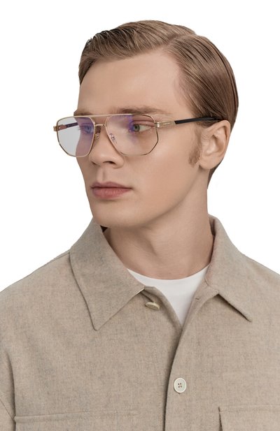 Для изготовления оправы с контрастными заушниками использовали металл. Раздвоенные дужки модели, вдохновленные фирменным узором пейсли, украсили логотипом бренда.