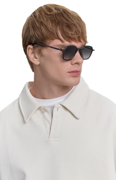 Солнцезащитные очки из титана и ацетата Mazzucchelli 1849 выпустили ограниченным тиражом 555 экземпляров. Аксессуар дополнили фирменным поворотным мостом, который позволяет сложить дужки таким образом, чтобы они защищали линзы Zeiss с обеих сторон.