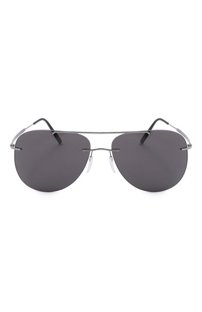 Солнцезащитные очки Chesterman прямоугольной формы выполнили из High-tech титана и ацетата. Безободковый аксессуар дополнили антибликовыми линзами Silhouette Light Management®.