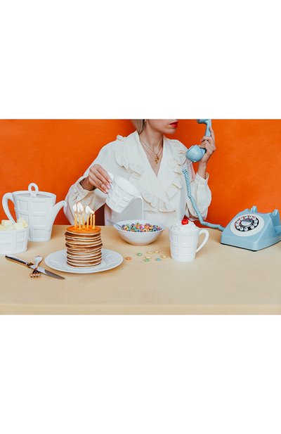 Мягкая простота формы у небольшого кофейника из сервиза Naxos контрастирует с рельефным орнаментом, который разработал Оливье Ганьер, вдохновившись архитектурой кессонных потолков. Остроту линий узора художник сгладил чистым белым цветом и тончайшим лиможским фарфором, создающими рассеянную тень на гранях.