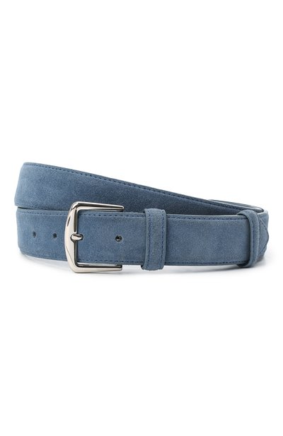 Для создания голубого ремня мастера марки использовали прочную бархатистую замшу Alsavel (благодаря специальной обработке материал меньше пачкается). Посадку регулирует квадратная пряжка с палладиевым напылением, которое защищает металл от потускнения и царапин. Аксессуар дополнен двумя тренчиками в тон.