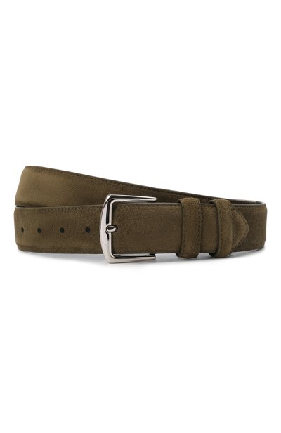 Для изготовления регулируемого ремня сдержанного оттенка хаки использовали сочетание мягкой фактурной замши и гладкой кожи Alsavel, обработанной специальным составом. За счет такого приема на изделии не остаются пятна, оно легко очищается от загрязнений. Серебристая миниатюрная пряжка не потускнеет благодаря палладиевому напылению.