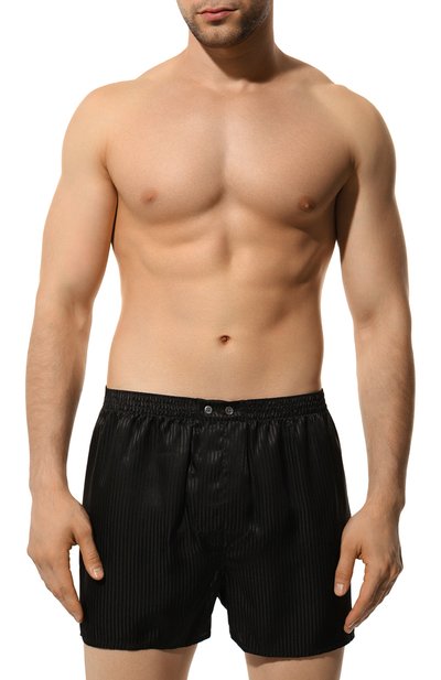 Для пошива черных боксеров Woburn силуэта Classic fit использовали шелковый атлас. Модель на пуговицах дополнили эластичным поясом-резинкой, а сзади предусмотрели мягкую вставку, препятствующую натиранию.