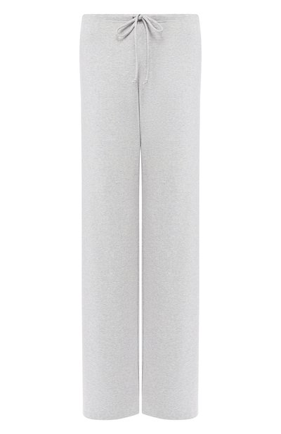 Серые брюки прямого кроя, с узким поясом на кулиске сшиты из ультрамягкого эластичного джерси на основе хлопка и вискозы. Гладкий трикотаж обладает шелковистой текстурой, а одежда из него не сковывает движений, поэтому в таких брюках будет удобно как дома, так и в самолете или поезде.