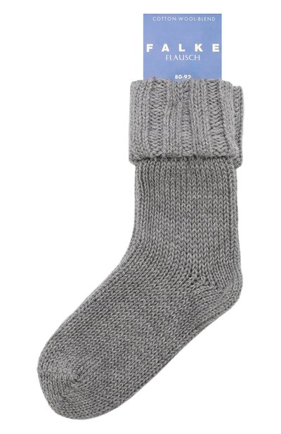 Вязаные носки с широкими отворотами и укрепленными мысом, пяткой и подошвой вошли в коллекцию сезона осень-зима. Для изготовления аксессуара серого цвета мастера марки использовали приятную на ощупь пряжу из шерсти мериноса с добавлением прочного хлопка.
