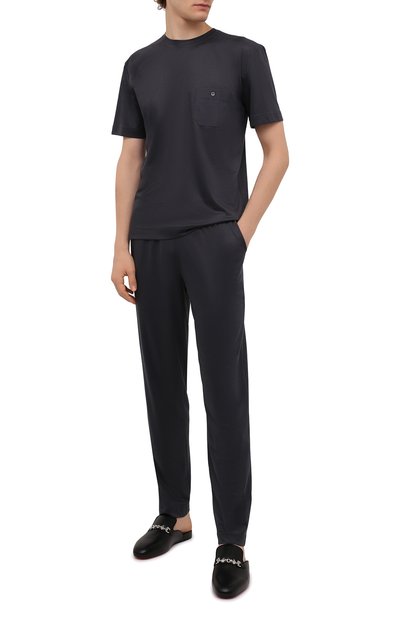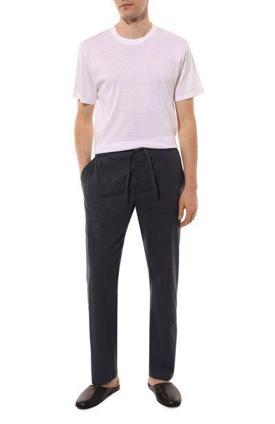 Брюки из трикотажа френч терри на основе хлопка Supima окрасили в готовом виде с добавлением смягчителей. Модель с широким поясом-кулиской дополнили боковыми прорезными карманами и задними накладными.
