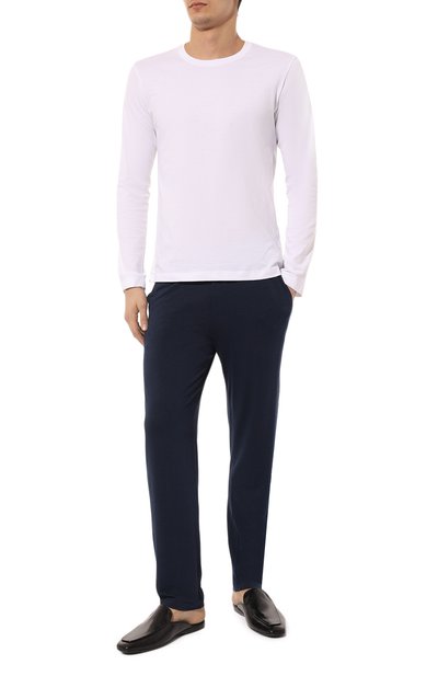 Брюки из трикотажа френч терри на основе хлопка Supima окрасили в готовом виде с добавлением смягчителей. Модель с широким поясом-кулиской дополнили боковыми прорезными карманами и задними накладными.
