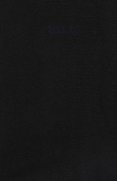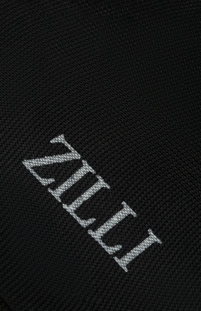 Темно-синие носки декорированы белоснежной надписью в виде логотипа марки. Для производства высокой модели дизайнеры бренда выбрали прочный гладкий шелк, поэтому изделие прослужит долго. Широкая манжета не впивается в кожу и не натирает.