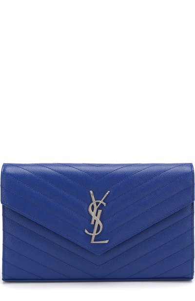 В весенне-летнюю коллекцию вошел яркий, будто разукрашенный синим фломастером клатч Monogram (Энтони Ваккарелло назвал этот оттенок Royal Blue). Мастера марки сшили стеганую модель из мягкой фактурной тисненой кожи. Фигурный клапан декорирован архивной монограммой, составленной из инициалов Ива Сен-Лорана. Тонкий, регулируемый по длине ремень-це почку можно отстегнуть.