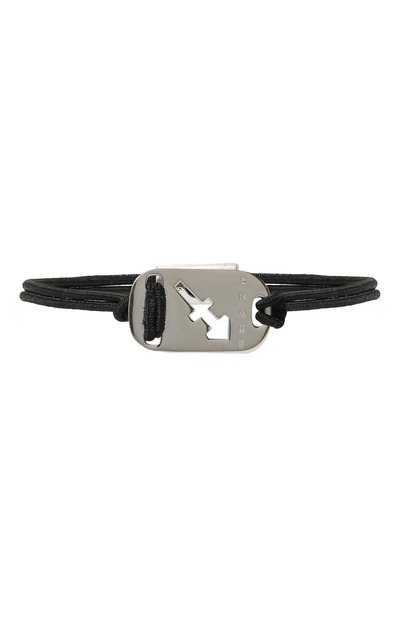 Команда бренда по-своему обыграла армейский жетон на этом браслете, украсив его зодиакальным знаком Стрельца. Изменился не только дизайн, но и материал: деталь изготовлена не из обычного сплава, а из благородного стерлингового серебра. Неразъемный замок из такого же драгоценного металла фиксирует концы вощеного шнура, играющего роль основы аксессуара.