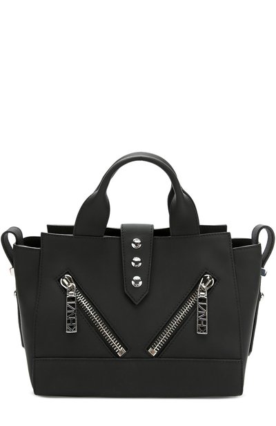 Черная сумка Kalifornia с двумя короткими ручками создана из матовой гладкой кожи. Классическая модель дополнена тремя внешними карманами, застегивающимися на молнию. Пуллеры выполнены в виде логотипа марки, основанной Кензо Такада. В комплекте – плечевой ремень.