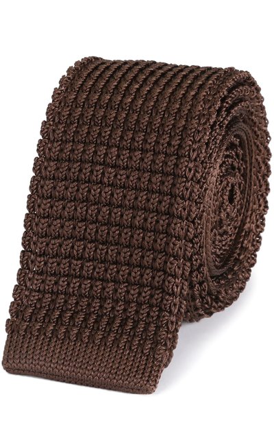 Фактурный вязаный аксессуар поможет обойти правило, по которому галстуки сочетаются только с пиджаком. Попробуйте носить эту узкую модель цвета темного шоколада с кардиганом, рубашкой и формальными брюками. Мастера марки выполнили изделие вручную из тонкой шелковой пряжи.