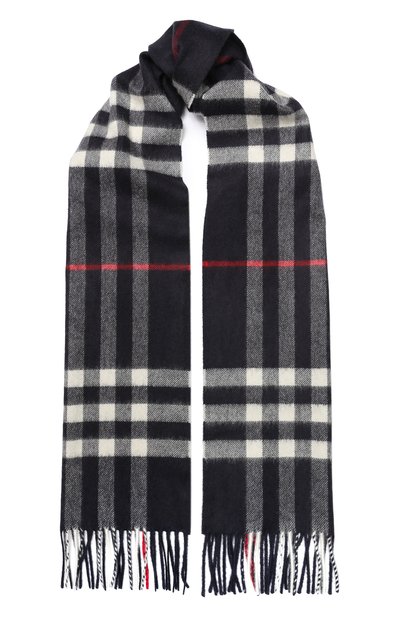 Темно-синий цвет задает фон шарфу с длинной бахромой, но аксессуар не выглядит просто. Правильное настроение здесь задает фирменная бело-красная клетка, которую создает переплетение нитей. Мастера марки выполнили вещь из нежного, приятного к телу кашемира. Чтобы тонкий материал был еще мягче, его вымачивали в родниковой воде и вычесывали ворсовальными шишками.