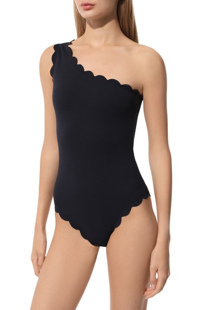 Черное бра с широкими бретелями выполнили из быстросохнущего фактурной микрофибры. Нежный тонкий материал хорошо тянется, обеспечивая комфортную посадку. Модель с плоскими швами и эластичным поясом декорировали корсетной шнуровкой и крупными волнистыми фестонами.