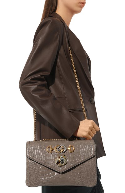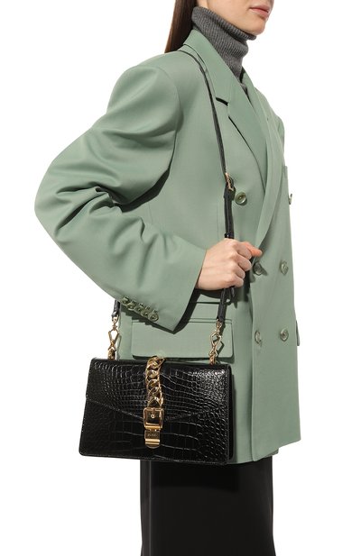В сумке Natalia Том Форд сделал ставку на фактуру, выбрав для создания модели прочную кожу миссисипского аллигатора. Характерный узор подчеркнули неоднородным металлизированным покрытием. В общей тональности выполнили и поворотный замок, стилизованный под дверной навес. В аксессуаре со скользящим плечевым ремнем-цепочкой поместятся любимый аромат, смартфон и ключи.