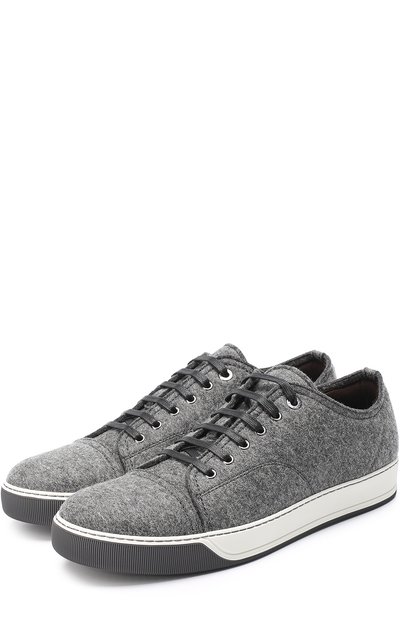 Серые кеды могут стать идеальным дополнением к повседневному образу. Для производства изделия мастера марки, основанной Жанной Ланван, использовали плотную ворсовую шерсть мериноса. Такой материал хорошо держит форму и сохраняет тепло. Широкая двухцветная подошва изготовлена из прочной гибкой резины.