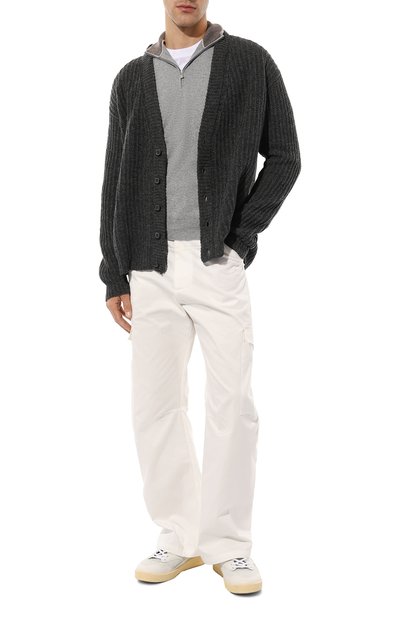 Серый джемпер станет идеальной основой как повседневного комплекта, так и нестрогого офисного образа. Для изготовления модели с воротником-стойкой и короткой молнией мастера итальянской марки использовали тонкий шерстяной трикотаж. Материал из тщательно очищенного от жестких волокон сырья получился приятным на ощупь, поэтому в изделии будет комфортно.