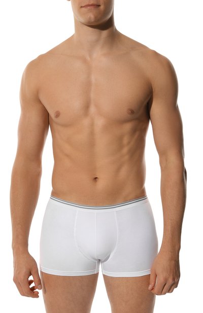 Белоснежные боксеры выполнены мастерами марки из гипоаллергенного хлопка редкого сорта, который растет на островах Вест-Индии. Такой материал легче и тоньше шелка, а на ощупь — нежнее и мягче кашемира. Широкий пояс-резинка украшен тканым логотипом бренда. Благодаря плоским усиленным швам облегающая модель не будет заметна под одеждой.
