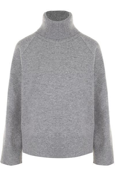 Свободный светло-серый свитер изготовлен мастерами марки из мягкой шерстяной пряжи, которая хорошо удерживает тепло. Изделие с высоким воротником и укороченными рукавами дополнено небольшим патчем в виде логотипа бренда. Модель вошла в осенне-зимнюю коллекцию.