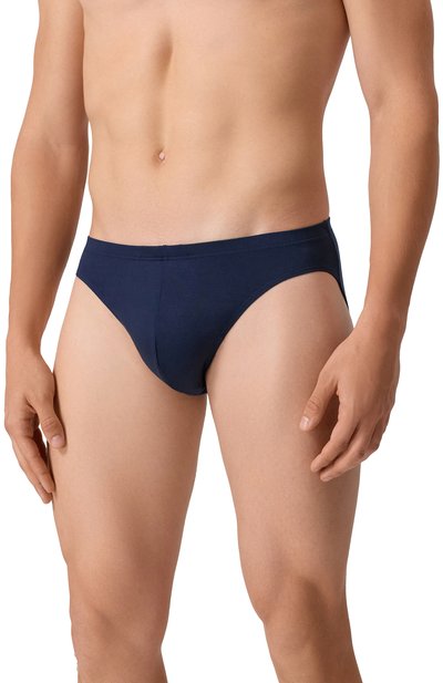 Мастера марки создали брифы из плотного хлопкового трикотажа темно-синего оттенка. Благодаря эластичным волокнам в составе материала трусы не сковывают движений. За счет широкого пояса-резинки нижнее белье комфортно садится по фигуре.