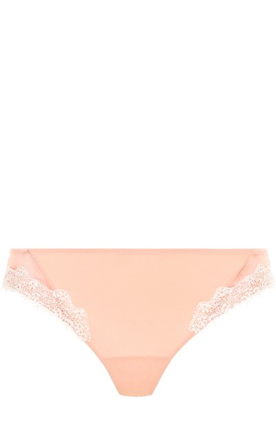 Бежевые слипы из эластичного шелкового трикотажа украшены по бокам ажурным белым кружевом макраме с цветочным мотивом, на создание которого дизайнеров бренда вдохновила красота природы английского сада. Трусы с низкой посадкой плотно облегают бедра и не сковывают движения.
