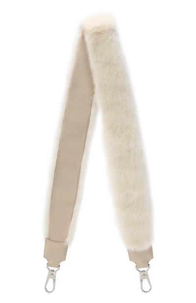 Широкий съемный ремень — оригинальный и быстрый способ обновить любимую сумку: когда аксессуар надоест, его можно просто отстегнуть. Для создания модели мастера марки использовали мягкую мелкозернистую кожу кремового оттенка и густой мех норки в тон.