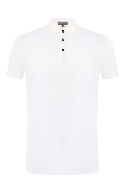 У поло много достоинств, но главное из них — хлопок пике, который хорошо пропускает воздух. Из такого материала выполнена и эта белоснежная модель из классической коллекции бренда, основанного Жанной Ланван. Изделие с короткими рукавами и отложным атласным воротником застегивается контрастными пуговицами. Образ завершат темно-синие джинсы и черные кеды.