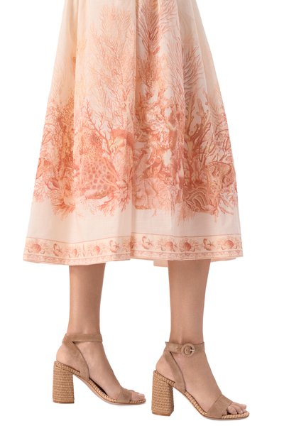Босоножки Versilia с высоким задником выполнены из мягкой эластичной замши светло-бежевого оттенка. Джанвито Росси дополнил модель из весенне-летней коллекции невысоким устойчивым каблуком. Широкий ремешок на щиколотке застегивается фирменной круглой пряжкой.