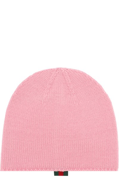 Мастера марки связали шапку бини из мягкой, хорошо сохраняющей тепло шерстяной пряжи. Модель плотно сидит на голове, не пережимая сосуды. Изделие нежного розового оттенка декорировано патчем в виде знаковой для бренда красно-зеленой ленты Web.