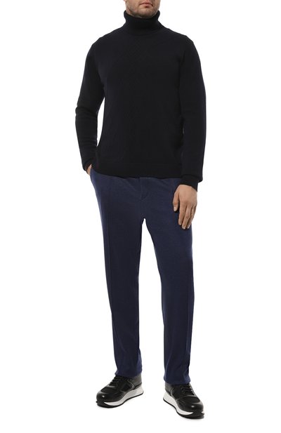 Синие брюки из тонкой мягкой шерсти Wish, дополненные лампасами из легкого кашемирового джерси на несколько тонов светлее, вошли в весенне-летнюю коллекцию. Изделия из такого материала поддерживают комфортную для тела температуру и хорошо тянутся, не сковывая движения. За оптимальную посадку на талии отвечает широкий пояс-кулиска.