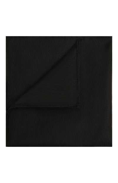 Мастера марки изготовили черный нагрудный платок из тонкого шелка с фактурным узором в виде узких полос. По краям изделия — аккуратный ролик, выполненный по технологии hand-rolled. На важные переговоры сочетайте аксессуар с галстуком, для встречи в неформальной обстановке достаточно одного паше.