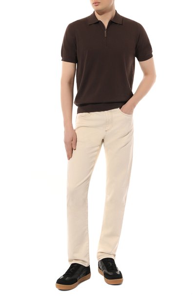 Лаконичное поло каштанового оттенка органично дополнит повседневный образ с джинсами и сможет заменить рубашку в офисе с нестрогим дресс-кодом. Для пошива модели с короткими рукавами мастера марки, основанной братьями Канали, использовали тонкое джерси из премиального хлопка с особенно длинными волокнами. Нити мерсеризовали, чтобы убрать малейшие неровности и ворсинки, поэтому материал в гладкости не уступает шелку и приобрел деликатный блеск.
