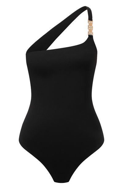 В случае с этим купальником расширяющаяся бретель с графичной застежкой – не только функциональный, но и декоративный элемент, который подчеркивает открытую спину. Асимметричная модель чистого черного цвета изготовлена из мягкого и при этом прочного полиамида с добавлением эластановых волокон.